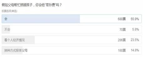 某媒体就此事做过一个网络调查,根据结果显示,超过一半网友表示,假如父母帮忙照顾孩子,会给“带孙费”。
