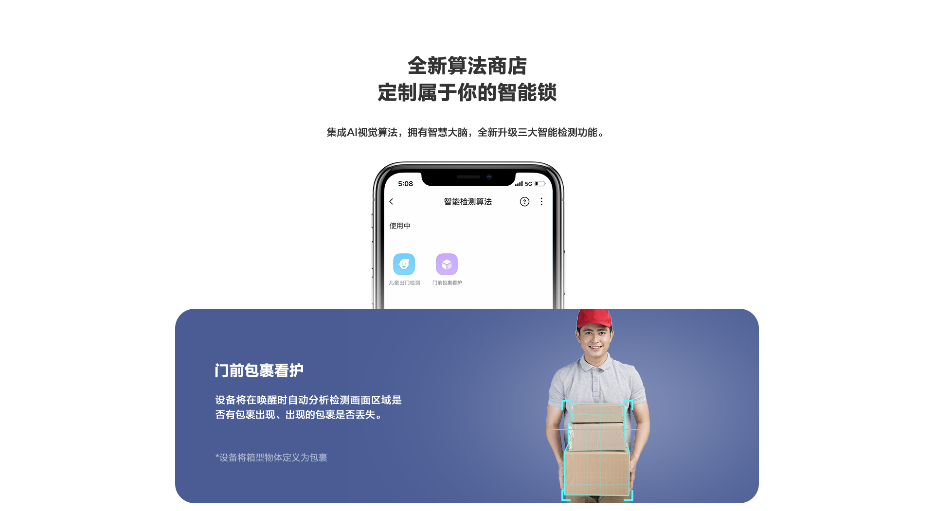 智能算法 支持算法商店,可下载使用包裹看护检测、儿童出门检测