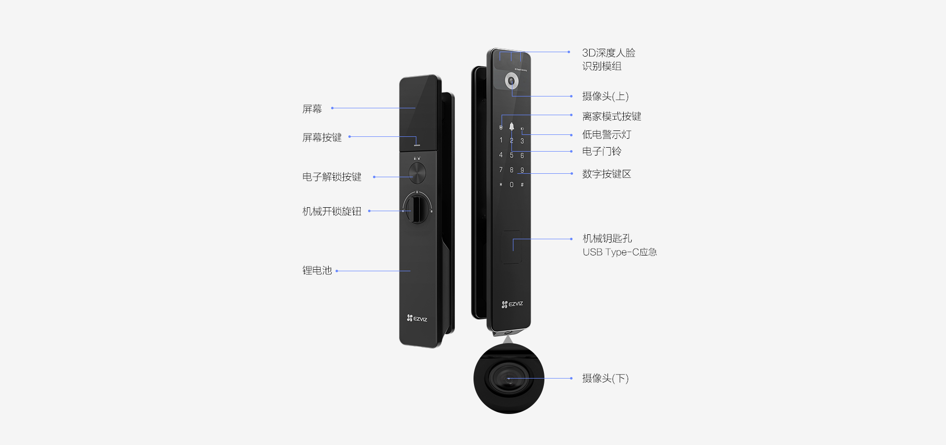 开锁开锁方式 人脸开锁、密码开锁、临时密码开锁、可视远程开锁、应急钥匙开锁