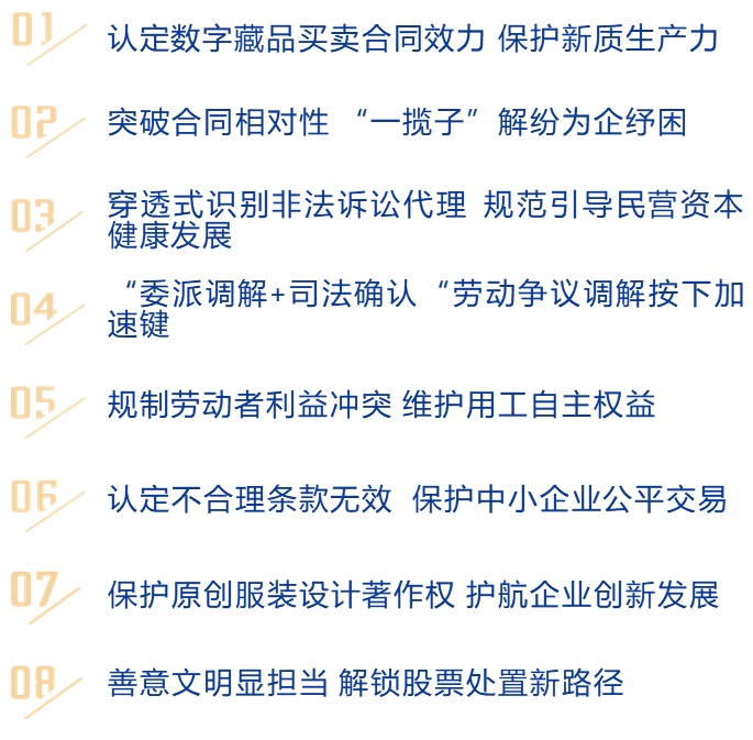 普陀区人民法院发布的典型案例是一幅生动的法治护航图。从数字经济的创新保护到知识产权的精细管理,从劳动争议的柔性解决到市场秩序的刚性规范,人民法院始终站在改革前沿,用公正司法为企业发展按下“快进键”。优化营商环境不是“一锤子买卖”,需要持续的制度创新和文化培育,人民法院展现出的司法担当和智慧,让我们有理由期待一个更加公平、透明、可预期的法治化营商环境。