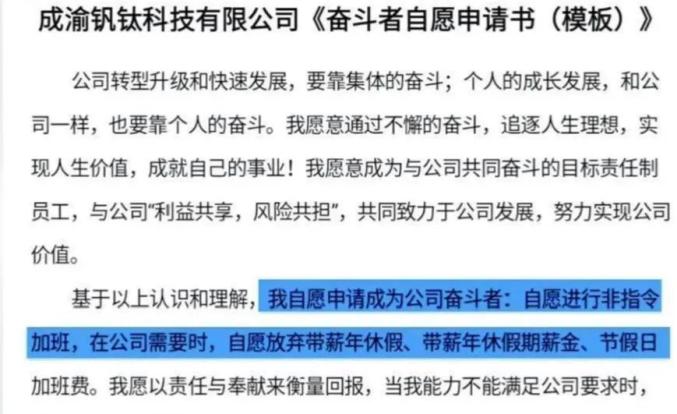 近日,某科技有限公司的《奋斗者自愿申请书》引起网络热议。