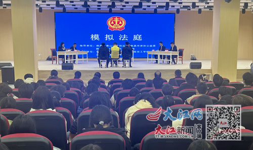 此次活动以“模拟法庭进校园,法治精神润青春”为主题,由南昌市青山湖区司法局、南昌市律协公益委、南昌市公安局青山湖分局佛塔派出所、江西道善律师事务所联合新法治报社、赣法云客户端举办,是第822期“公益律师进社区”活动。