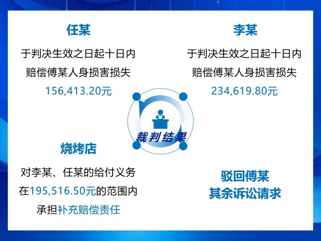3、烧烤店对李某、任某的给付义务在195,516.50元的范围内承担补充赔偿责任;