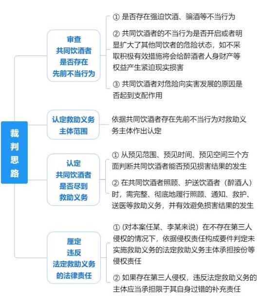 共同饮酒虽系正常的社会交往活动,单纯饮酒并不产生民事责任,但是共同饮酒人之间应当尽到相互提醒、劝告少饮酒并且阻止已过量饮酒之人继续饮酒的注意义务;当共同饮酒人处于醉酒等危险状态时,其他共同饮酒人应及时采取救护、通知、照顾、送医等合理措施保护醉酒之人免受伤害,积极履行救助义务,若因过错违反上述义务,应依法承担相应的责任。