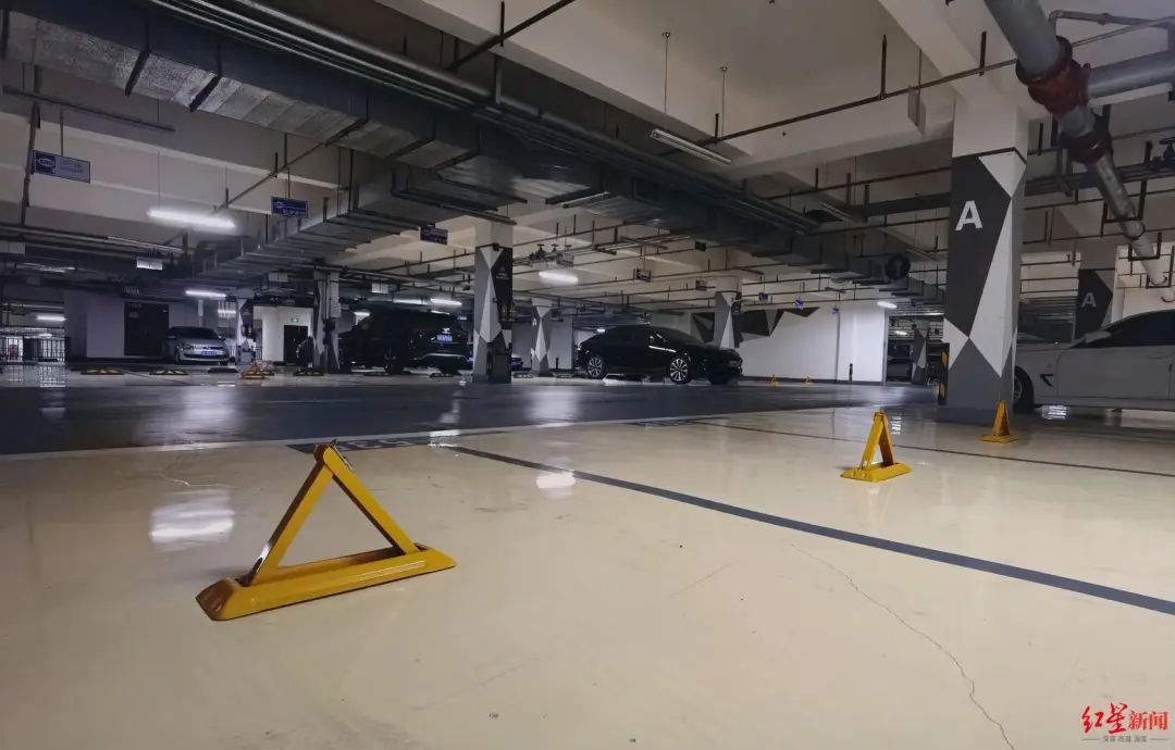 7月4日,红星新闻记者在该小区地下车库看到,大部分车位均贴有“私家车位”字样并标注了车牌号,另有不少车位安装了黄色地锁,其中一部分被锁的车位上方还贴有“人防车位”字样。