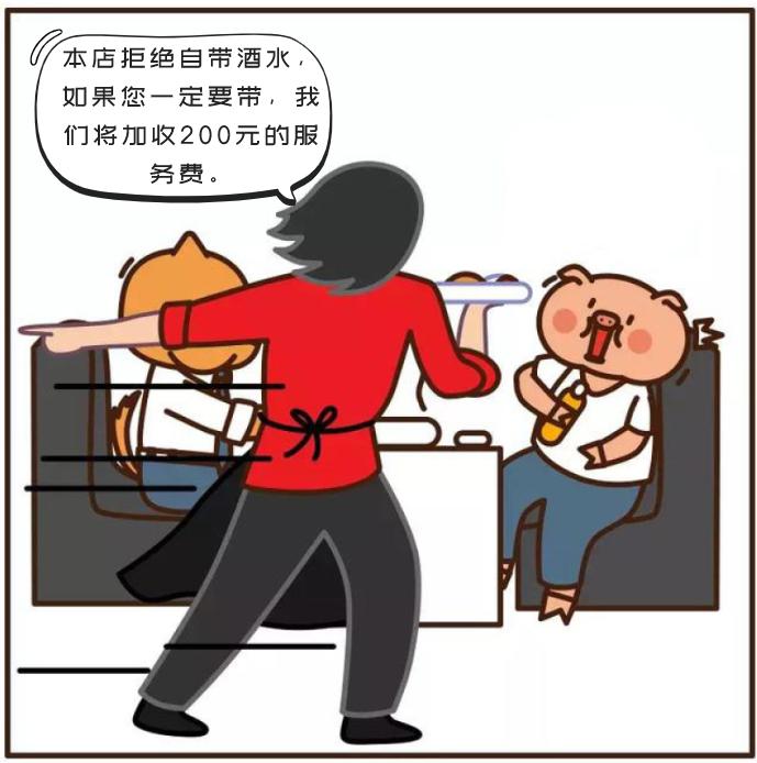 案例中,顾客与饭店之间因吃饭产生的民事法律行为,虽没有白纸黑字的约定,但双方在无形之中建立了餐饮服务合同。“本店拒绝自带酒水”的告示可以认定为饭店建立的格式条款,该条款限制了消费者的自主选择权,根据《民法典》第四百九十七条规定,如果提供格式条款的一方若存在不合理地免除或者减轻其责任、加重对方责任、限制对方主要权利的,该条款亦无效。因此,该案中饭店收取服务费的“霸王条款”是无效的。