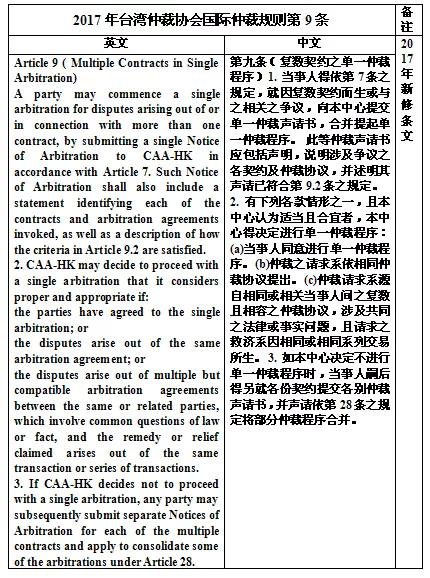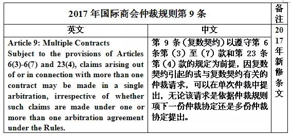 表八:新加坡仲裁仲裁中心复数合同仲裁规则