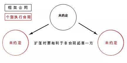 另外,相对于传统合同,框架合同适用的范围是合同相对人间日后的每一个合同关系,这样的状况下,框架合同条款实际是起到了桥梁的作用,将框架合同当中的部分条款与个别合同予以连结,此为框架合同条款向后拘束力及补充解释力的理论基础,也同样是为仲裁条款得以向个别合同扩张的主要理由,然而,框架合同与个别合同间的效力关系不可套用于个别合同与个别合同间,因为,个别合同与个别合同间仍是独立的协议,相互间并不存在像框架合同与个别合同之间的紧密关联关系,不能仅因相同当事人间缔结的个别合同都在一个框架合同项下,而推论当事人对于这些没有包含仲裁条款的合同同样存在受仲裁条款拘束的意图,因此,个别合同之间的仲裁条款同样不可进行扩张。