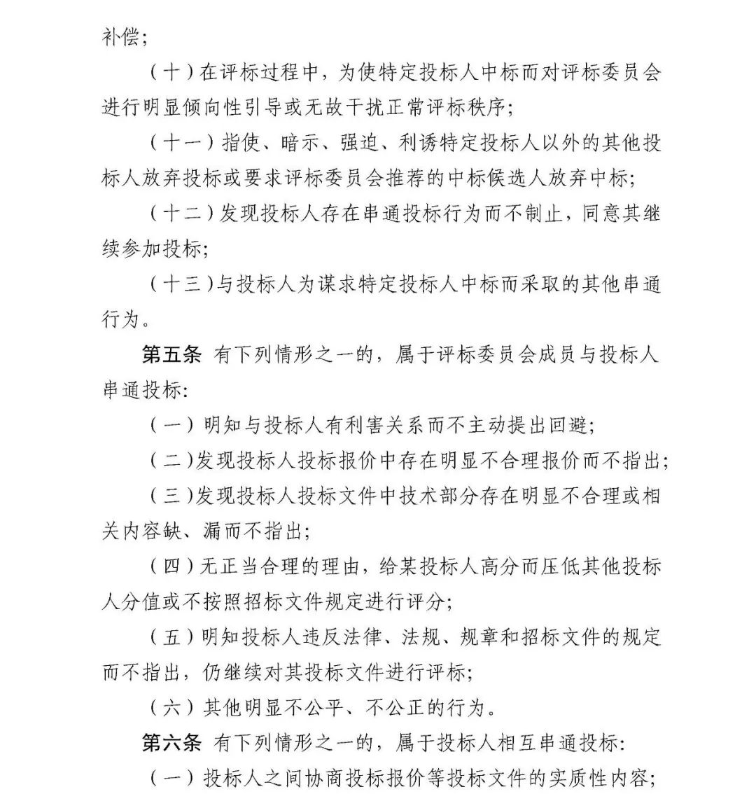 6.投标人之间为谋取中标或者排斥特定投标人而采取的其他联合行动。