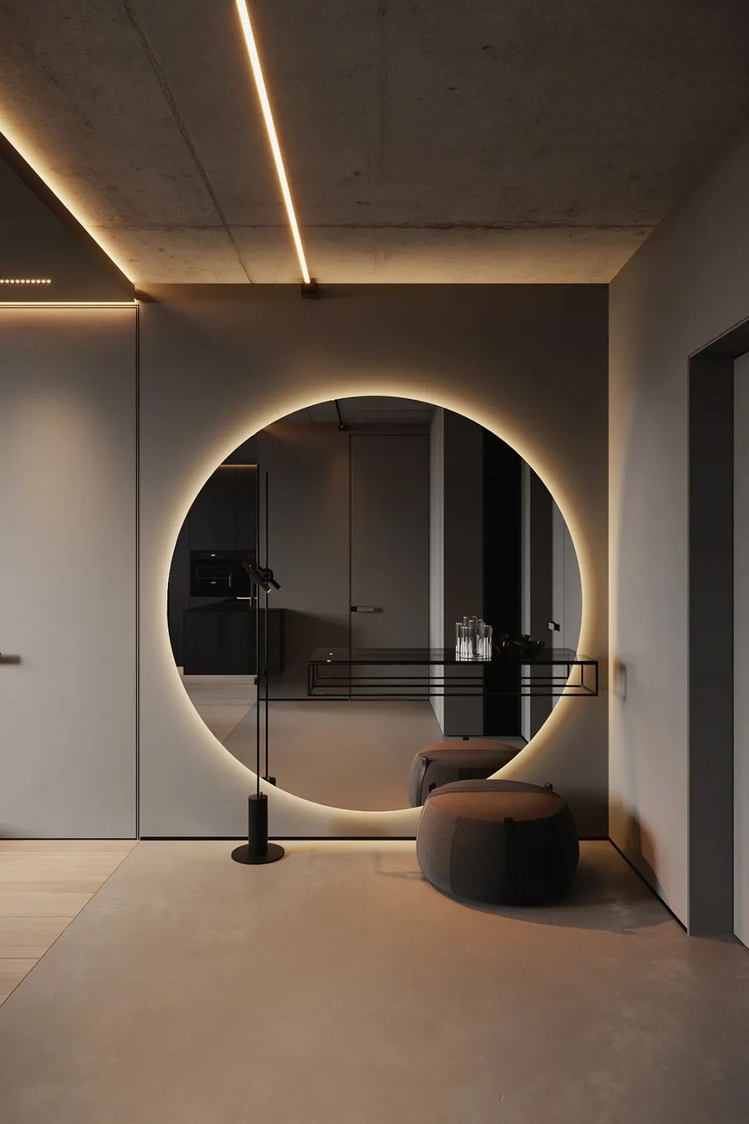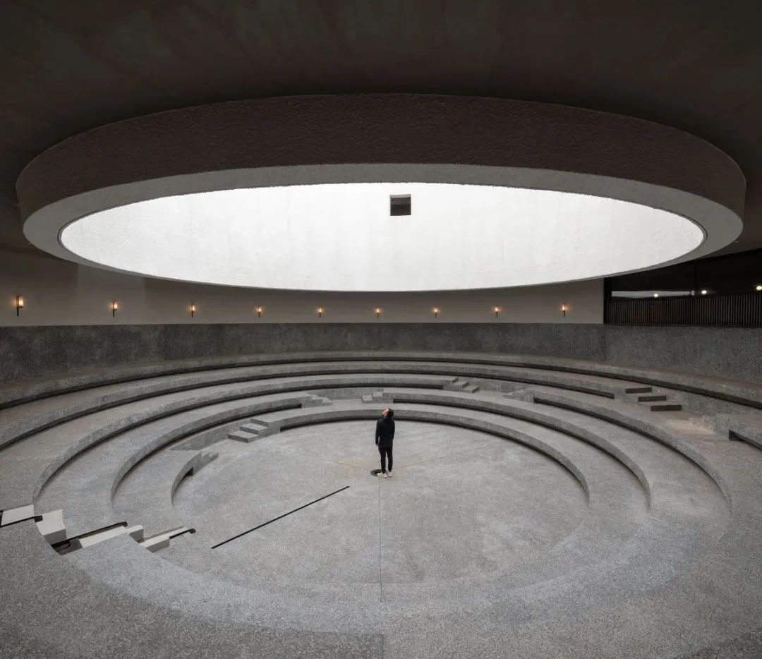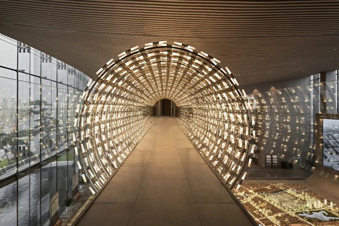 而进入空间的内部,优雅流畅的弧形线条,打造极致的空间韵律感,利用水池投射下的光影,变化莫测。