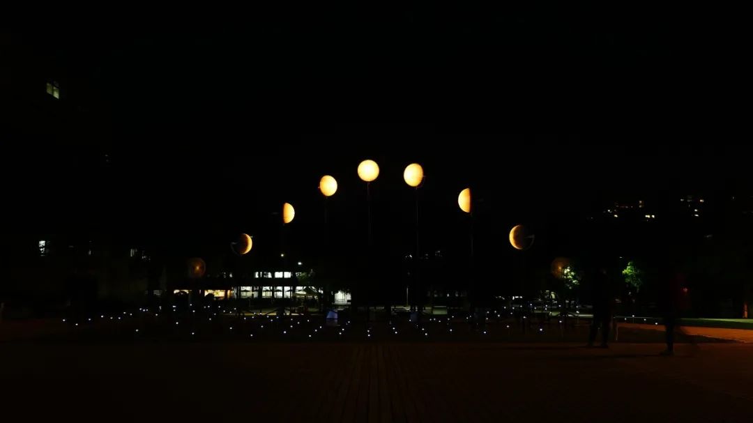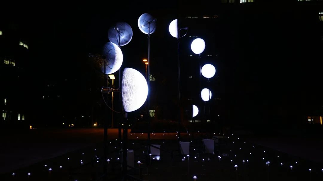 whyixd 工作室创建了《Define Moon》项目,作品高约5米,由九座旋转动力灯具组成,利用旋转动力灯具,提取以月之阴晴圆缺姿态呈现在眼前,开启一趟趟美妙的求知之旅。