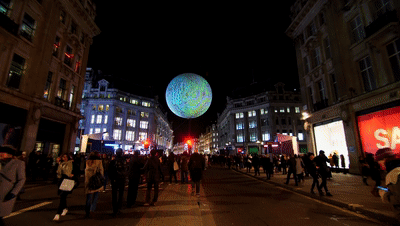 它就像一个近在咫尺的月亮一样,与街区的人群产生着微妙的共鸣。既点亮了街道,也为经过路口的人们创造了前所未有的视觉体验。