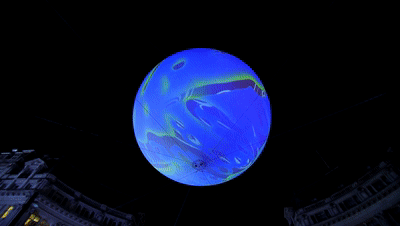 充气式球体直径约11米。球体状态的变化宛如细胞大量繁殖、分裂和融合,有时变得很快,有时又保持着原样。