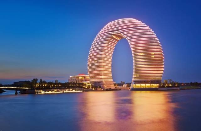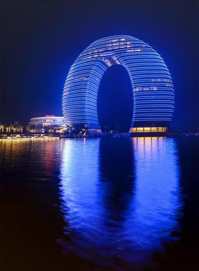 耗资15亿的中国首家指环形水上建筑,如今已成为湖州的地标性建筑,月亮酒店高达101.2米,在房间中即可将太湖的秀美收入眼底,为到来的每一个你打造一个月亮梦!