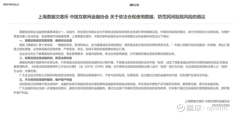 上海票据交易所 中国互联网金融协会 关于依法合规使用票据、防范民间贴现风险的倡议