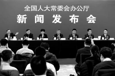 昨天,十二届全国人大常委会第十八次会议闭幕后,有关方面负责人就本次会议表决通过的法律等有关问题回答记者提问。京华时报记者 张斌摄