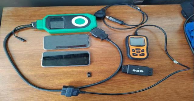 现场查获车载自动诊断系统作弊器及其配套设备