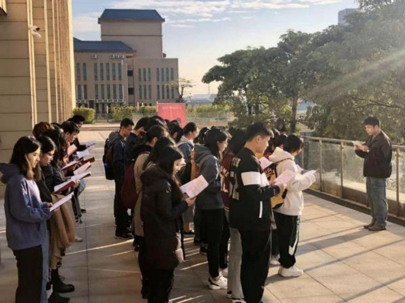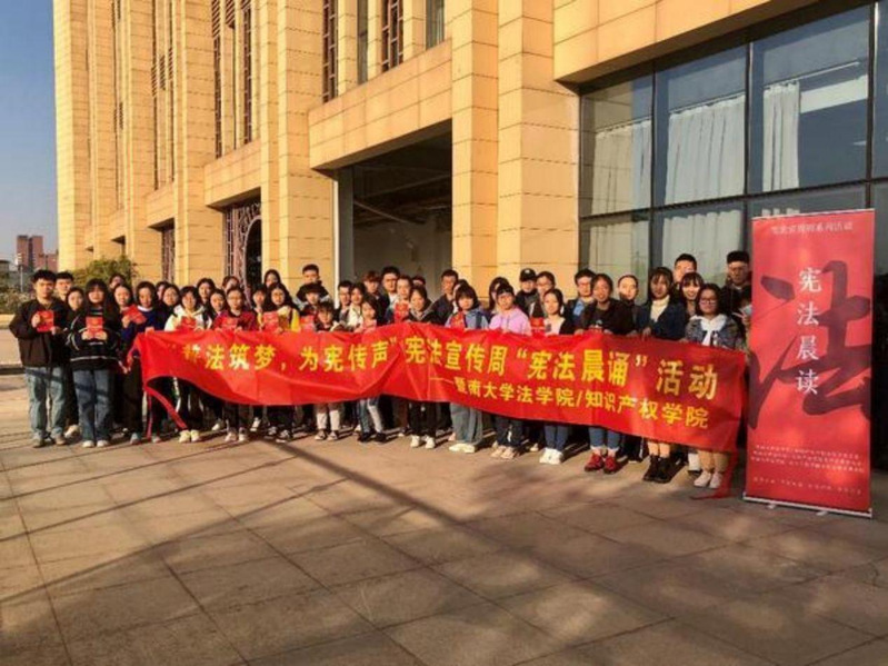 2019年12日6上午8时许,暨南大学法学院/知识产权学院学生党总支、本科生党支部、青年志愿者协会、法律青年志愿者服务队于暨南大学图书馆前组织开展宪法晨诵活动。