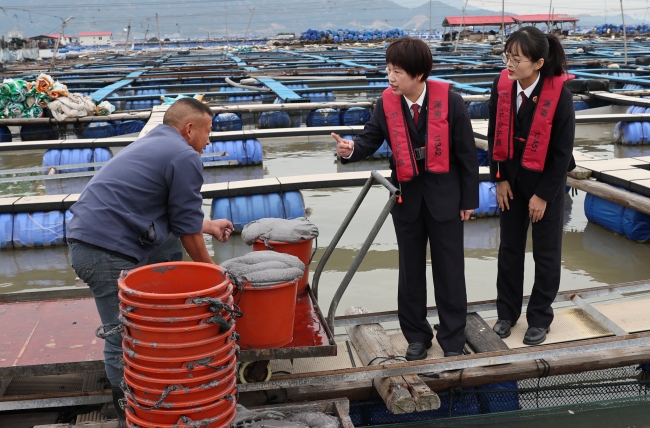霞浦县检察院检察官走上渔排了解渔业生产情况。