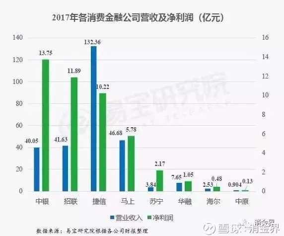 而有银行背景的消费金融公司,“背靠大树好乘凉”。例如中银消费金融,资金成本显然要低得多。尽管2017年营收只有40.05亿元,但利润最高,达到13.75亿元,利润率为34.33%。