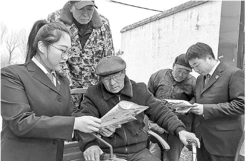 唐河县检察院检察干警深入乡村宣传毒品危害知识。