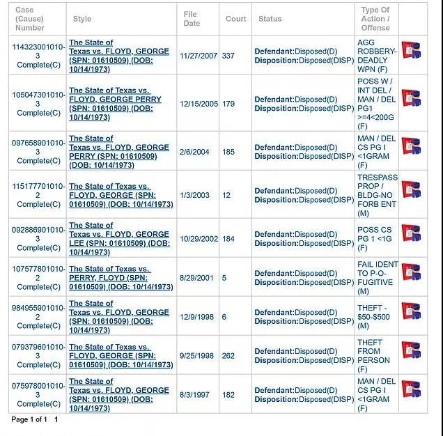 可以毫不夸张地说,在人生最黄金的岁月里,弗洛伊德基本是在毒品和监狱中度过的。弗洛伊德的犯罪档案显示:9次被控,6次罪名成立。