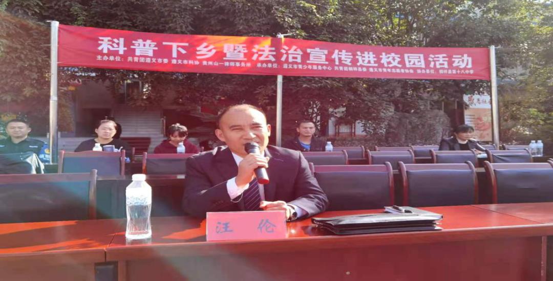 为了全面深入推进贵州省“七五”普法规划,切实预防和减少青少年违法犯罪,促进青少年健康成长,2020年11月12日,共青团遵义市委、遵义市科协、贵州山一律师事务所在桐梓县十八中学共同主办了法治宣传进校园及科普下乡活动。