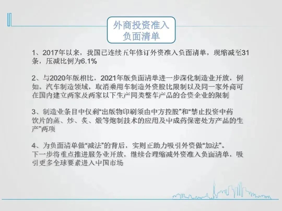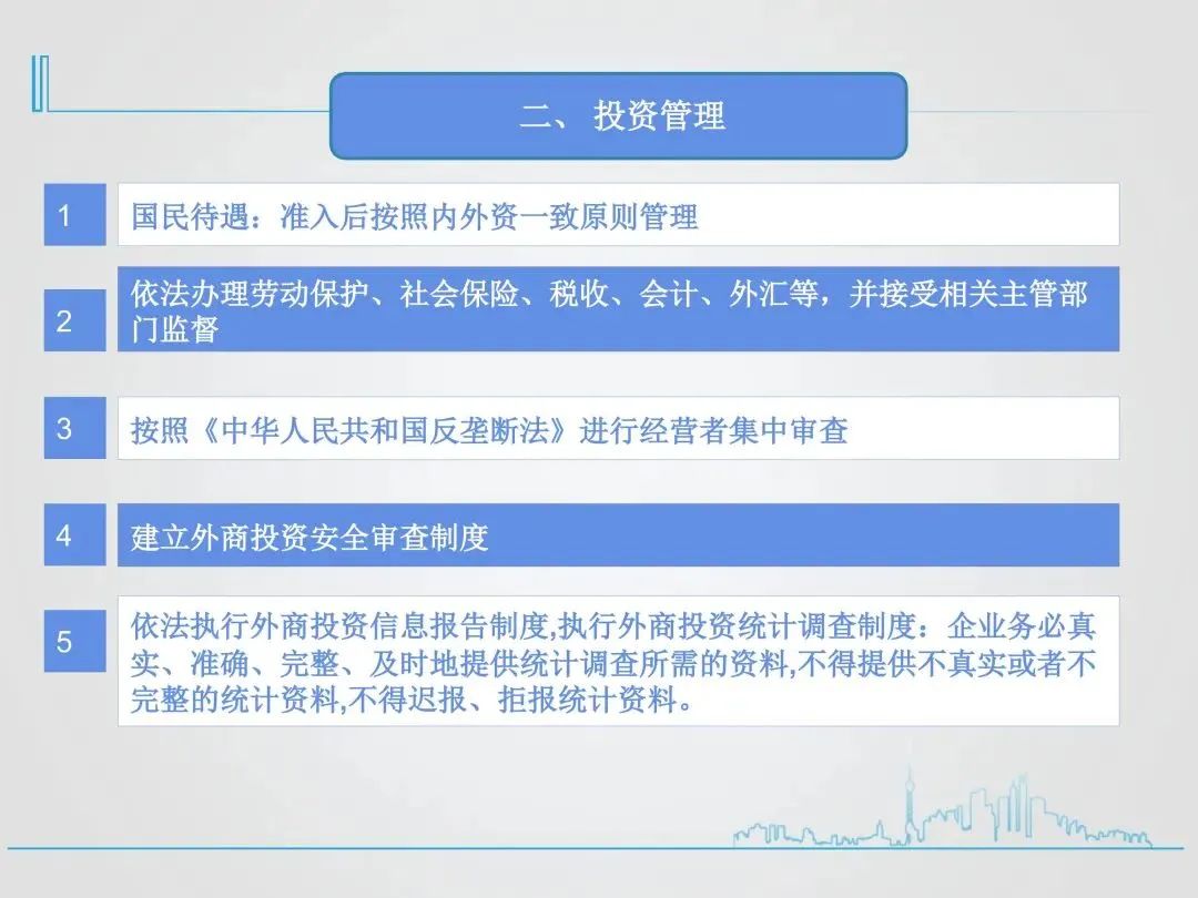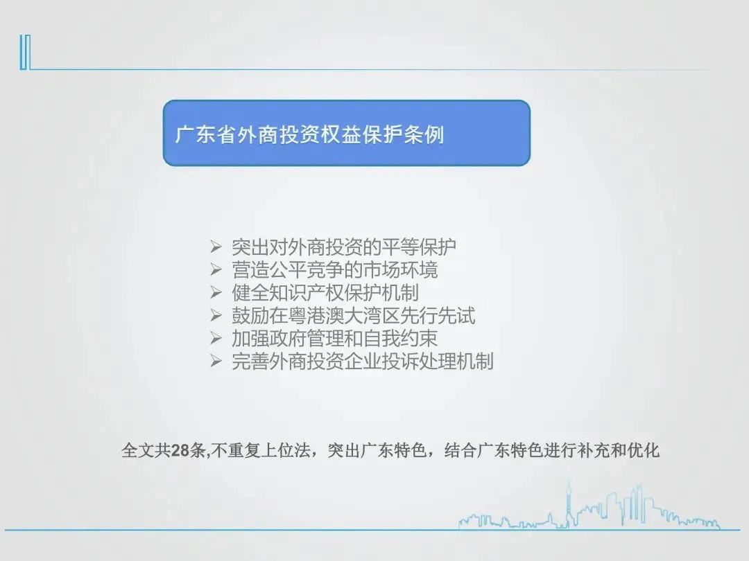惠州市商务局外资管理科科长周雪峰就外商投资需关注的法律法规进行了介绍。投资准入方面,《外商投资法》明确我国外商投资实施准入前国民待遇加负面清单管理制度,企业重点关注《市场准入负面清单》和《外商投资准入负面清单》,负面清单以外的行业从业者享受国民待遇,可在市场监督管理部门办理登记手续。投资管理方面,准入后按照内外资一致原则管理,企业需执行《外商投资信息报告办法》及外商投资统计调查制度,遵守经营者集中审查和外商投资安全审查制度。投资保护方面,广东制定首部外商投资权益保护地方性法规《广东省外商投资权益保护条例》,突出平等保护、营造公平竞争环境、健全知识产权保护机制、加强政府管理和自我约束。投资促进方面,省市建立健全外商投资服务体系,打造重点平台,推动招商引资高质量发展。