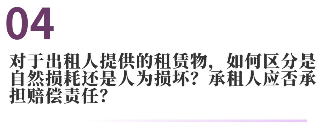 租赁物在正常使用的过程中通常都会产生自然损耗,例如家具褪色、灯具老化等。当自然损耗达到极限程度时,还会出现最终损坏的后果。通常情况下,若承租人以正常方法使用租赁物,即使租赁物随着时间推移而出现功能或外形退化,亦属于自然损耗。人为损坏则是由承租人故意或疏忽破坏所致。在租赁合同履行过程中,应当通过区分自然损耗与人为损坏,进而判断承租人应否向出租人承担相应赔偿责任。