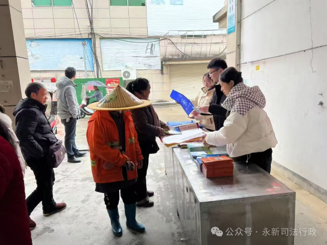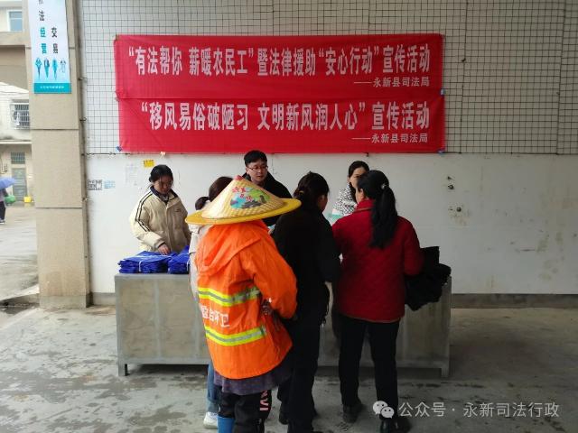 随着春节假期的结束,外出务工群众陆续复工返岗。为了让广大劳动者顺心生活、安心工作,2月19日上午,永新县在务工人员集中的小屋岭、埠前等地组织开展维护劳动者合法权益法律援助“安心行动”,切实增强群众的维权意识,为劳动者提供便捷的法律援助服务。