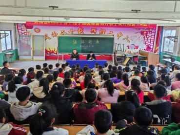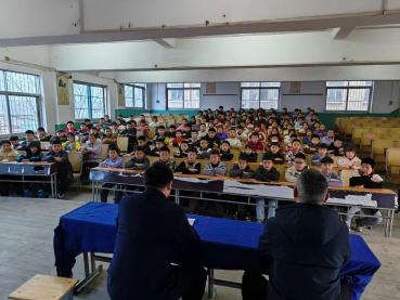 在县汤用彤学校五祖思源校区,五祖法庭联合当地司法所、派出所为该校七年级师生送上一堂别开生面的法治教育课。