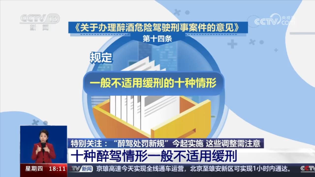 “醉驾处罚新规”开始实施:15种情形从重处理 10种情形一般不适用缓刑