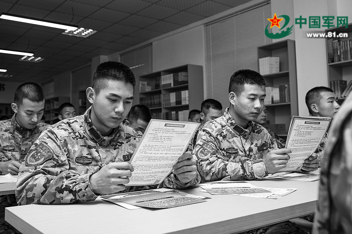 2月中旬,武警广西总队百色支队联合地方法院开展“送法进军营”活动。图为官兵认真学习法律知识。 唐明洋摄