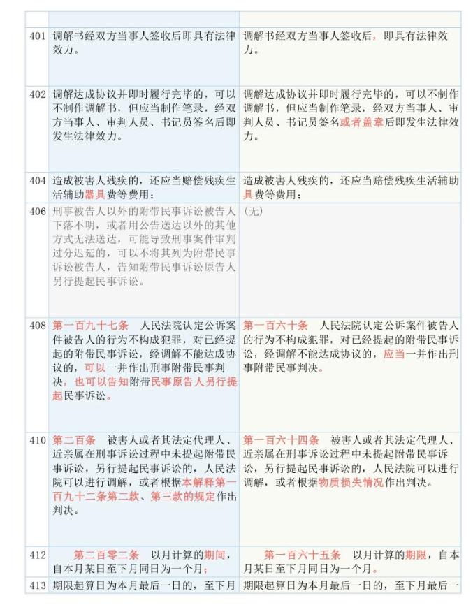 新旧条文对照一览无遗