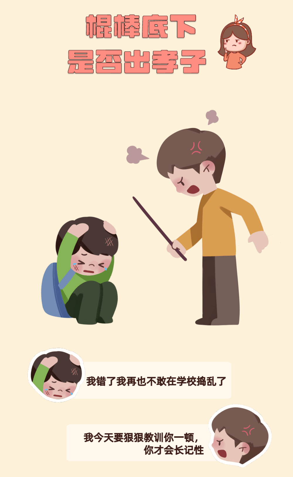 父母教育孩子要有耐心、爱心,不能单纯靠“武力”解决问题,暴力行为不仅可能伤害孩子,自身还可能存在触犯法律风险。