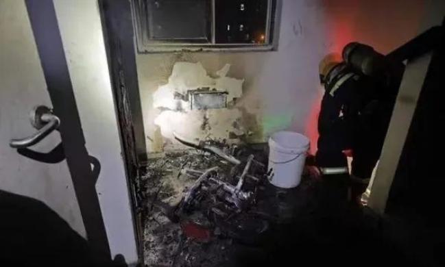 经调查走访得知,家住701室的李某接外孙回家后,把电动自行车的锂离子电池拿回家充电。不料放在书房充电的电池正冒黑烟,并伴有响声。李某立即将电池及充电器扔至7楼电梯厅处。不久后,电池着火发生爆炸。