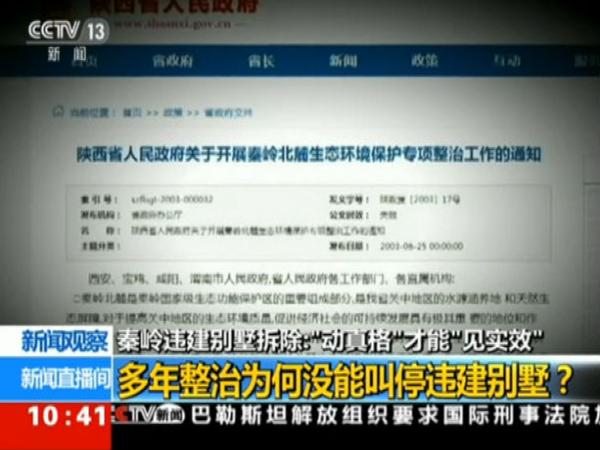 2012年8月17日,新华社发表《秦岭41栋别墅高调拆除 原地再建新别墅牟利》,曝光了西安市户县段41栋总面积达12万平方米的违规别墅,被拆除后,在原址上又要建新别墅的怪现象。