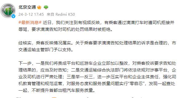 乘客通过滴滴打车时遭司机拒接并辱骂?官方最新通报→