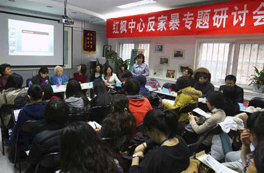 北京红枫中心举办关注妇女权利的反家暴专题研讨会。图/ 新华社