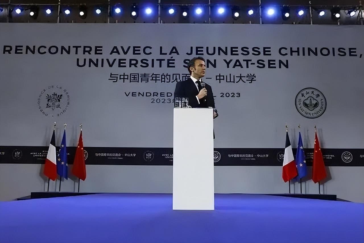 ▲ 2023年4月7日下午,法国总统马克龙抵达广州中山大学并在中山大学体育馆发表演讲。