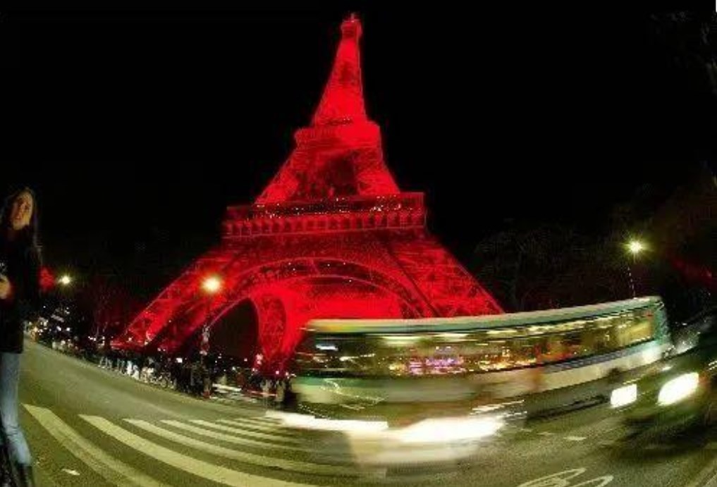 ▲ 2004年1月24日,115岁的埃菲尔铁塔第一次为中国亮起了红色