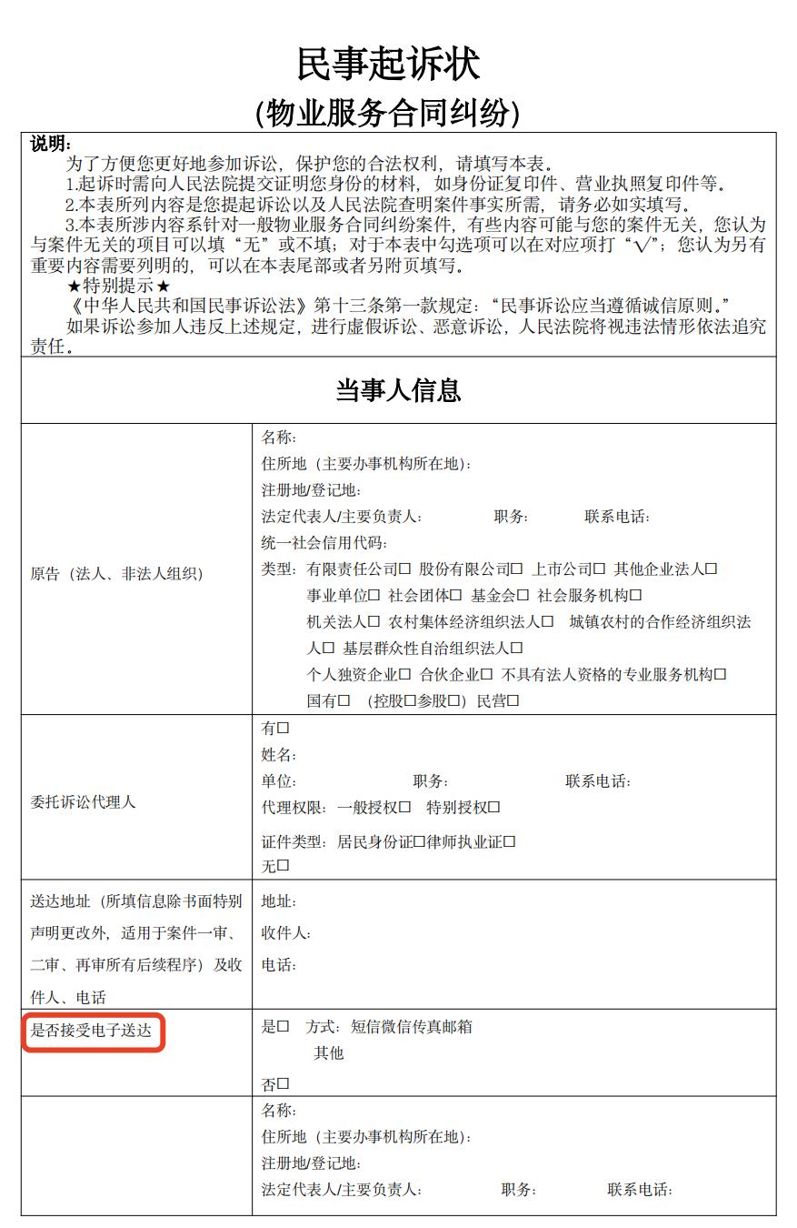 ➤ 要点2:原告的送达地址和联系方式一定要填写准确,建议接受“电子送达”,以便及时接收法院的相关诉讼材料。