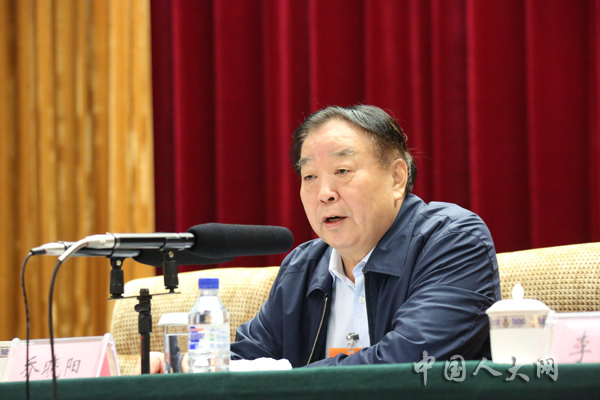 图为全国人大法律委员会主任委员乔晓阳讲话