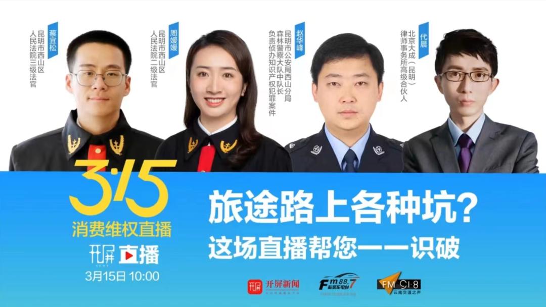 3月15日,西山法院法官周媛媛、蔡宜松走进春城晚报——开屏新闻直播间,围绕旅游消费纠纷问题,解答维权之道,共促消费公平。