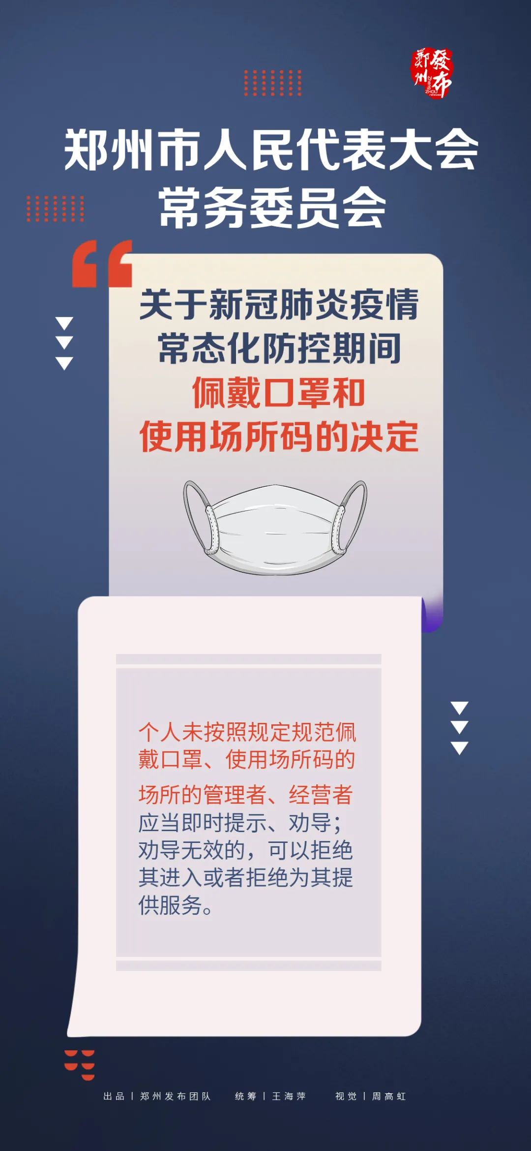 《郑州市人民代表大会常务委员会关于新冠肺炎疫情常态化防控期间佩戴口罩和使用场所码的决定》已经郑州市第十五届人民代表大会常务委员会第三十四次会议于2022年5月13日通过,现予公布,自公布之日起施行。