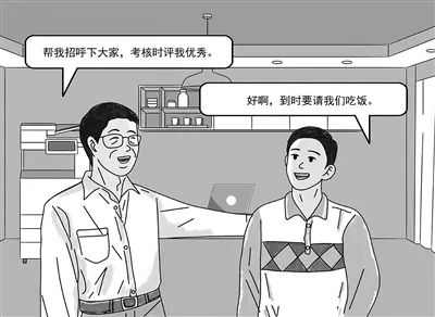 廖某请小李帮忙打招呼,让科里同事在考核时把优秀票投给他。