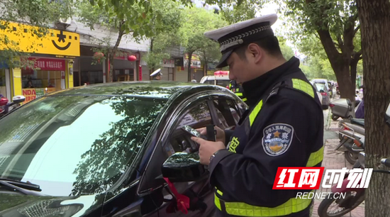 近段时间,靖州交警全天候开展交通秩序整治行动,严厉查处各类交通违法行为。在11月3日的整治中,一辆没有悬挂机动车号牌,仅在后车窗玻璃内放着一张过期临牌的黑色小车,逆停在马路旁,引起了交警的注意,车上没有任何联系方式。