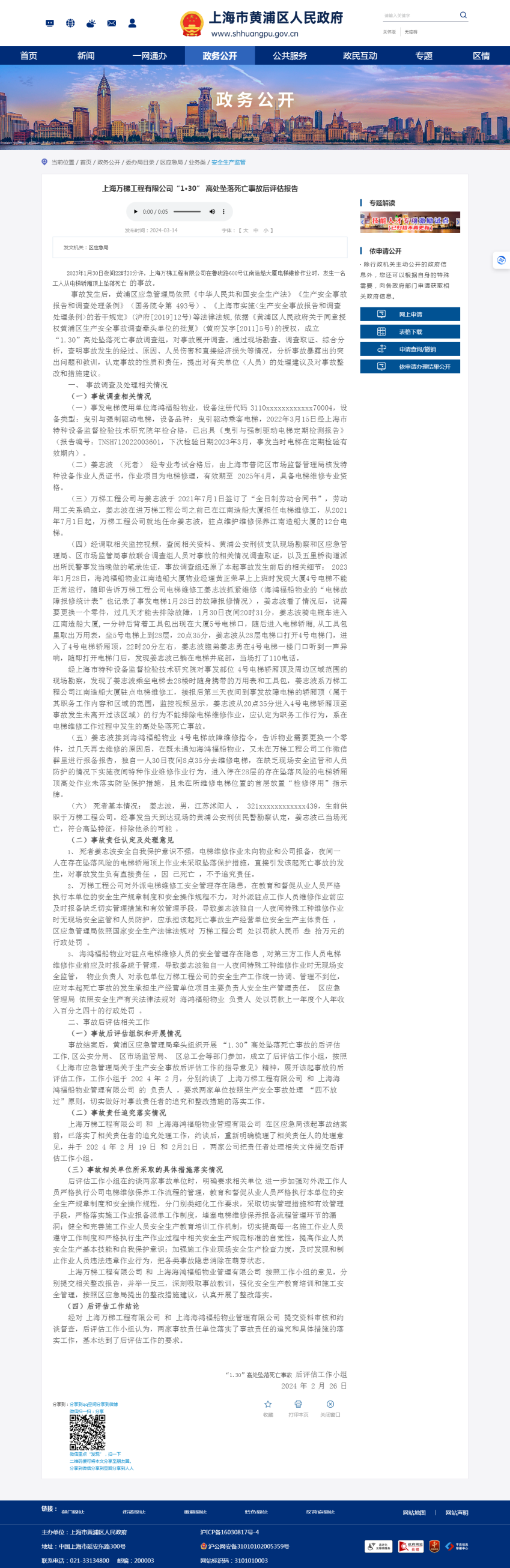 中国质量新闻网讯 近日,上海市黄浦区人民政府网站披露了上海万梯有限公司“1.30”高处坠落死亡事故后的评估报告。