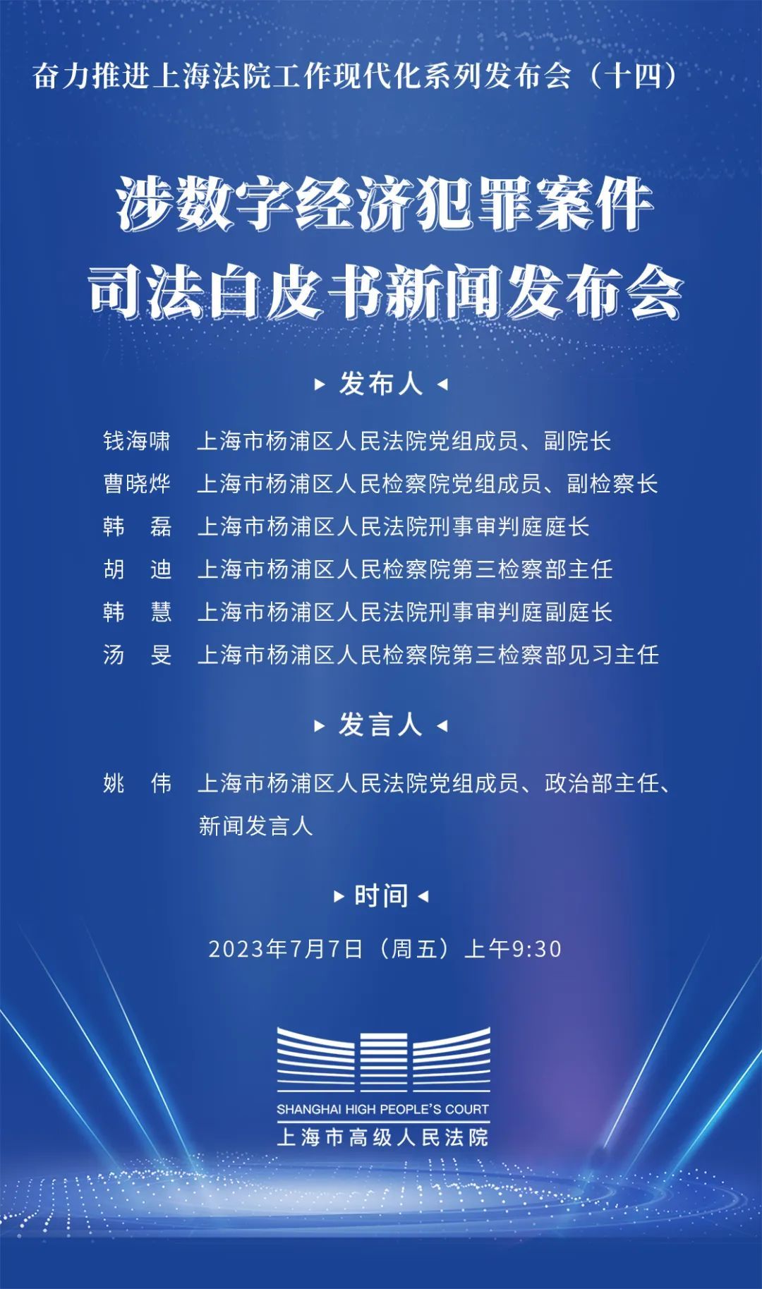为精准打击涉数字经济犯罪,维护数字经济繁荣发展,今天(7月7日)上午,上海市杨浦区人民法院(以下简称杨浦区人民法院)、上海市杨浦区人民检察院(以下简称杨浦区人民检察院)联合召开新闻发布会,发布《2018-2022年涉数字经济犯罪案件司法白皮书》(以下简称白皮书)、十个典型案例及《企业数据合规指引》《个人信息保护指引》(文末附全文)。