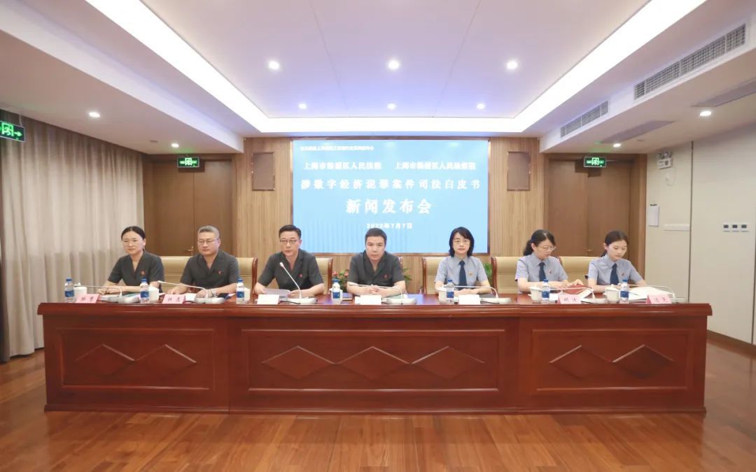 会上,钱海啸介绍了本次白皮书及典型案例、工作指引发布的背景和意义,曹晓烨通报了杨浦区打击涉数字经济犯罪成效及检法衔接工作情况,杨浦区人民法院刑事审判庭、杨浦区人民检察院第三检察部负责人分别就白皮书、典型案例及相关工作指引的主要内容进行解读并答记者问。